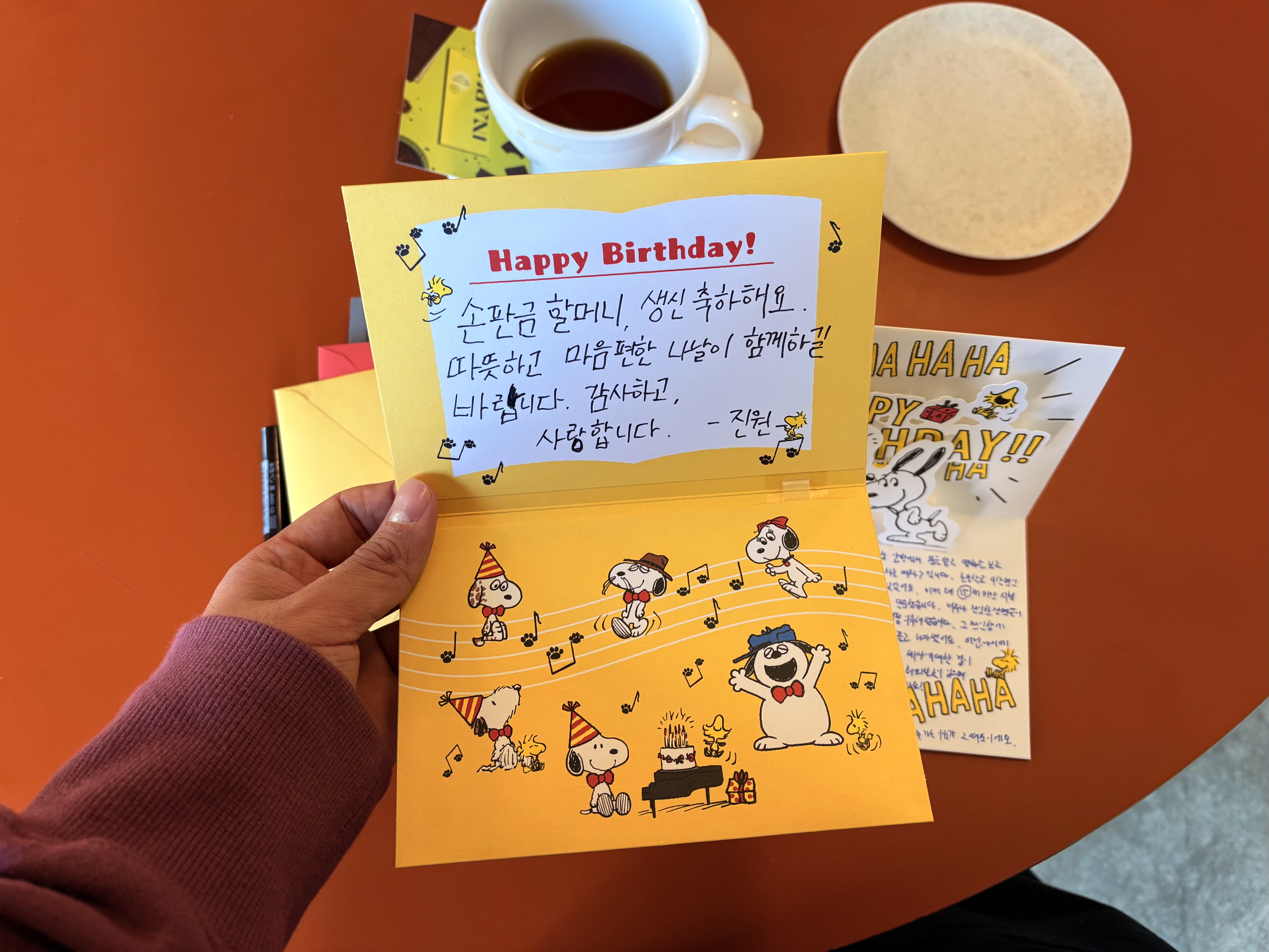 어릴 적 할머니와의 추억을 주저리주저리 쓰지 말고 그때의 내가 되자. 어린 글씨체를 보고, 짧은 순간 할머니도 그때의 손판금이 되어 기운 나길 바라며.